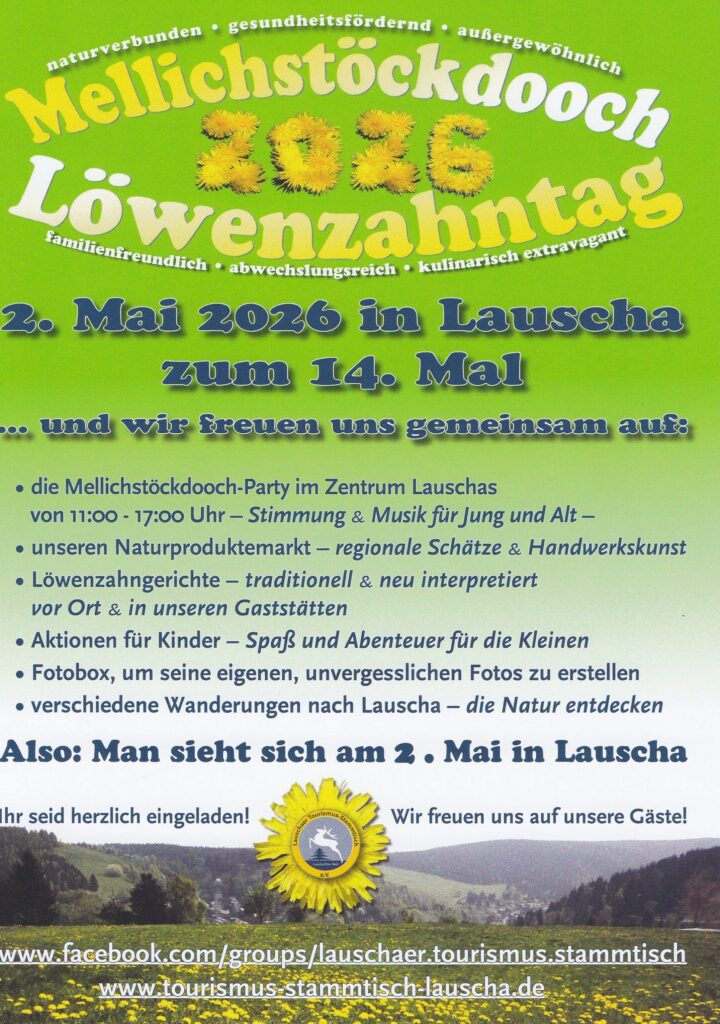 Musikalische Beiträge haben auch die Lauschensteiner Jodler und die Jagdhornbläser der Rennsteigjägerschaft im Gepäck. Unter dem Motto „Wild auf Wild“ warten wir mit vielen Informationen über hochwertiges Wildbret und natürlich auch mit entsprechenden Speisen auf. So gibt es – auch das gehört zur Tradition – ab ca. 16 Uhr Wildschwein am Spieß.